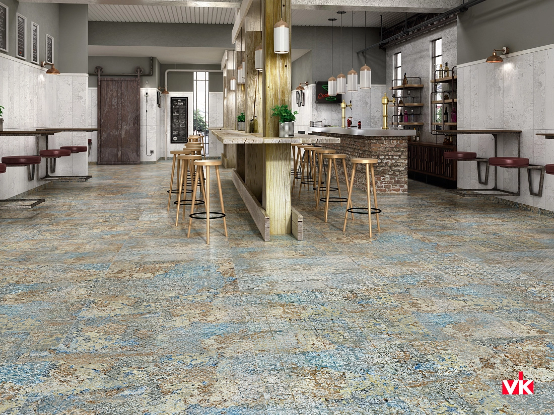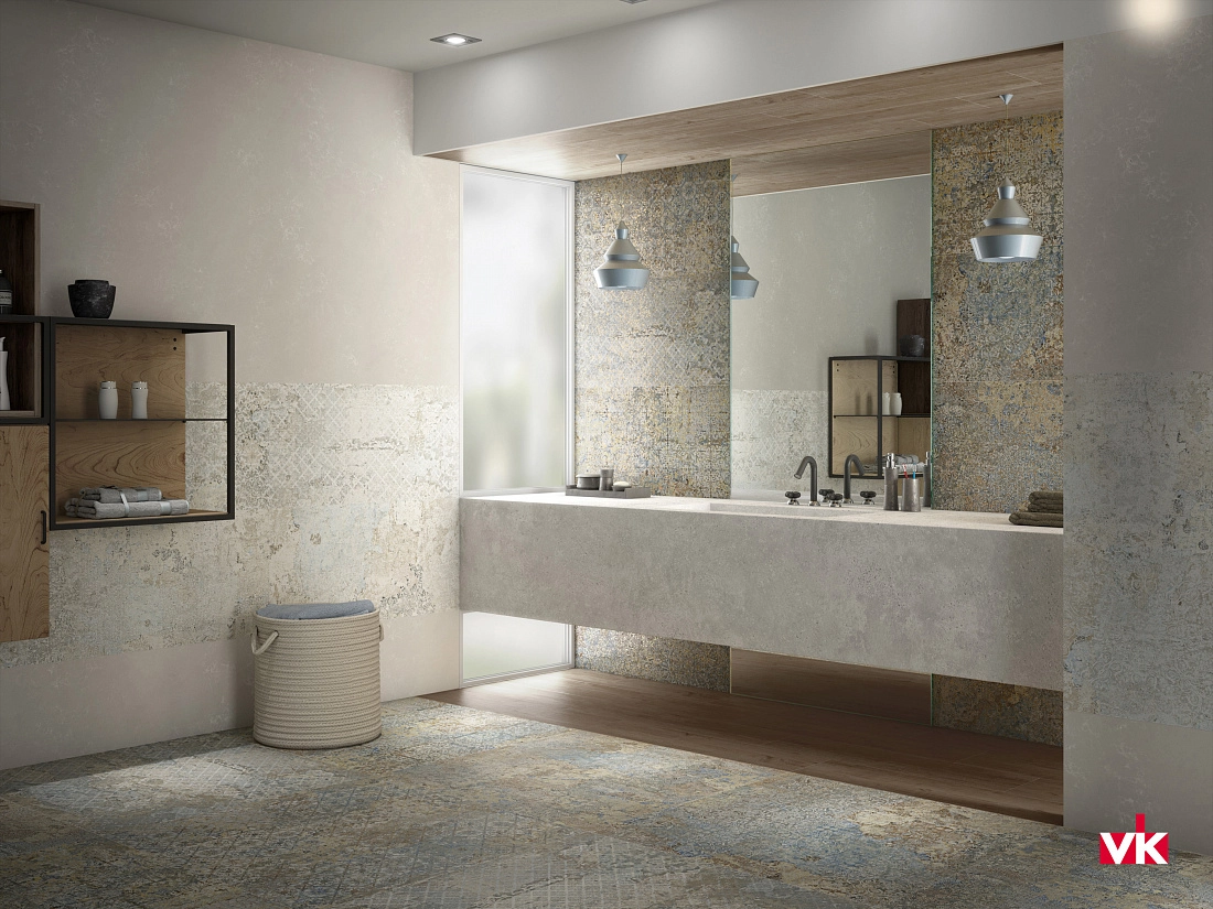 Интерьер помещений можно реализовать в более спокойных или насыщенных тонах. Для этого серия Aparici Carpet разделена на две категории Carpet Sand и Carpet Vestige. Поверхность плиток Aparici коллекции Carpet обработана так, что она воспринимается, как состаренная временем текстура, на которой остались оригинальные графические принты.