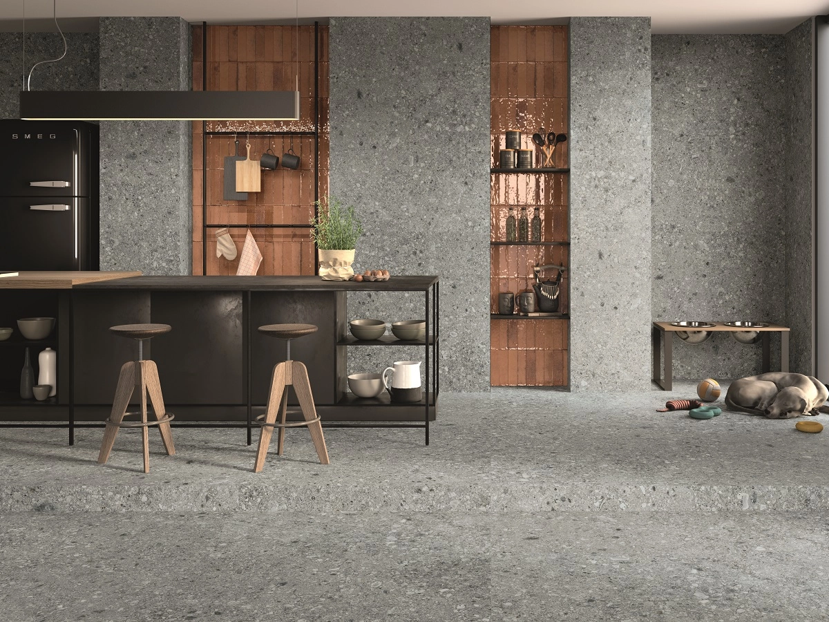 Коллекция полуполированного керамогранита для облицовки стен и пола. Высокий показатель износостойкости и противоскольжения позволяет использовать его для жилых помещений и даже лестниц, террас, холлов на коммерческих объектах со средним и высоким потоком посетителей, в зонах с риском попадания воды на пол – кухнях, санузлах, складах.