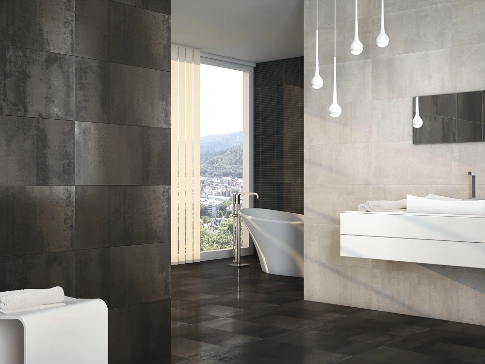 Для любителей урбанистического стиля предлагается коллекция керамической плитки APE Dorian. В этой серии производитель попытался свести воедино два стиля – high-tech и лофт. В результате этого получились изделия, в которых проглядывается текстура бетона, смешанная с оттенком стали и меди, окислившегося железа.