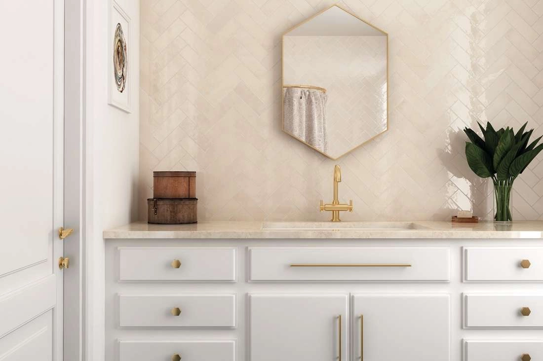 Плитка имеет глянцевую поверхность с лёгкими небрежными неровностями. Они по-разному отражают падающий солнечный свет, что создаёт игру бликов, придавая помещениям особый, романтический шарм.