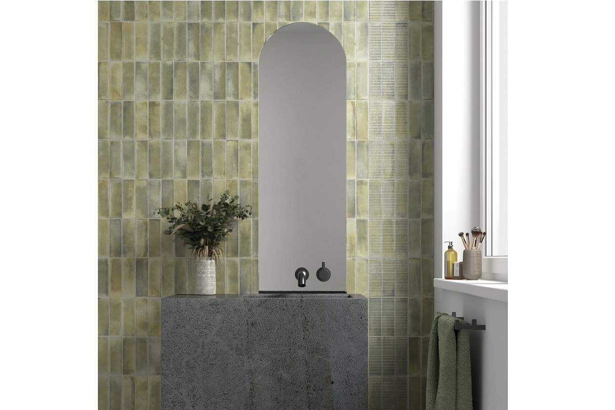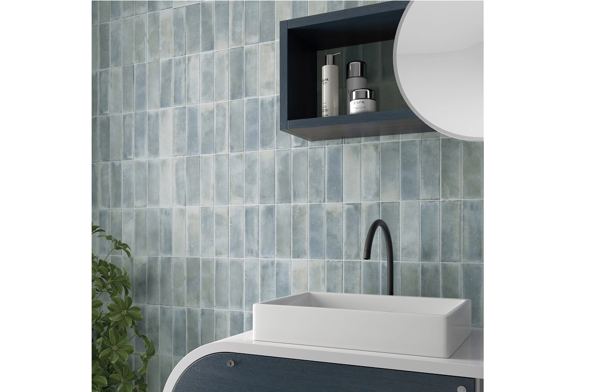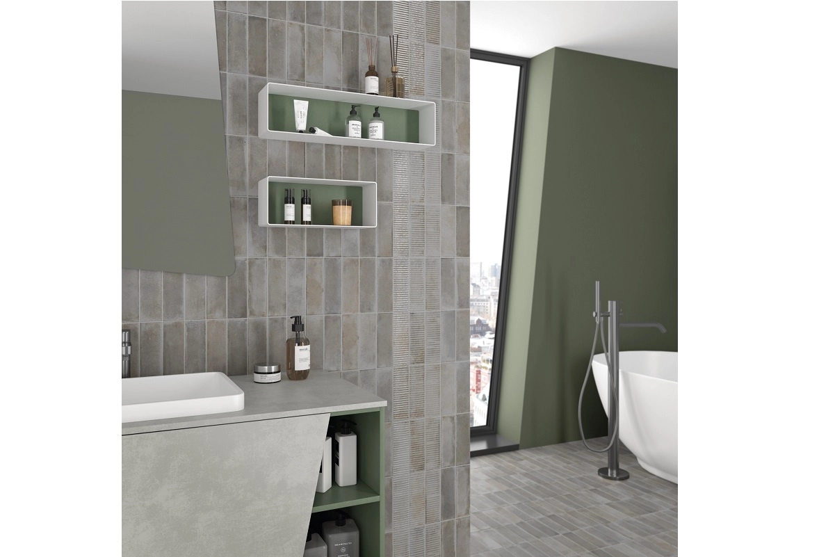 В коллекции керамической плитки Equipe Raku квадратные (10х10 см) и прямоугольные (18,6x6 см) элементы. Оба размера есть в двух вариантах фактур – гладкой или ребристой.