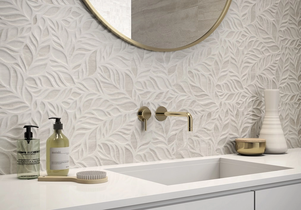 Metropol Luxury – это коллекция керамической плитки и напольного керамогранита, сочетающим в себе классику натурального мрамора и современных мотивов. Она имитирует поверхность натурального камня или окаменелых листьев, благодаря чему получаются интересные решения при дизайнерском оформлении различных помещений. Ее можно использовать в: