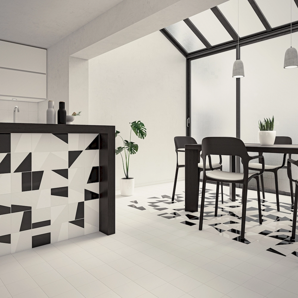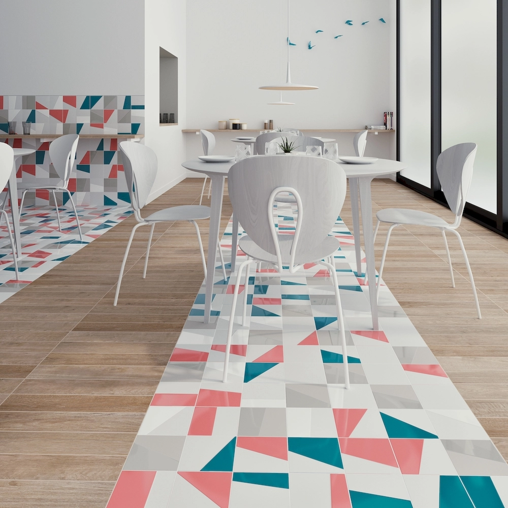 Плитка WOW в дизайне Duo используется для оформления ванной комнаты, кухонь, гостиных в стиле арт деко, современный. Используя рисунок моноколор, можно создавать различные графические решения, комбинируя между собой белый, розовый, синий, серый, черный цвета. Испанская коллекция включает десять элементов квадратной формы небольшого размера – 150х150 мм. С их помощью дизайнеры создают уникальные решения для оформления помещений жилых домов, кафе, ресторанов.