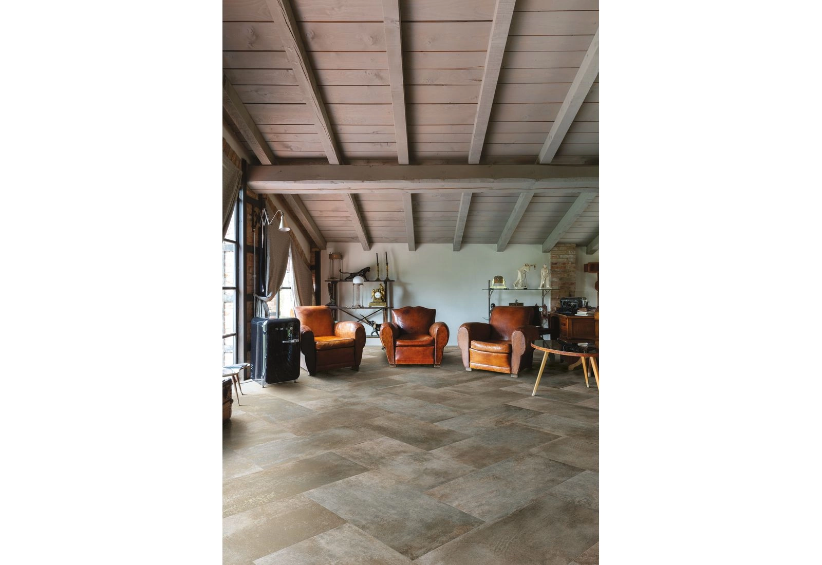 Керамогранит производится в трех форм-факторах 600х600 мм, 600х1200 мм и 1200х1200 мм. Края плит ректифицированы, что позволяет выполнять бесшовную укладку и получать монолитную поверхность без видимых визуальных стыков.