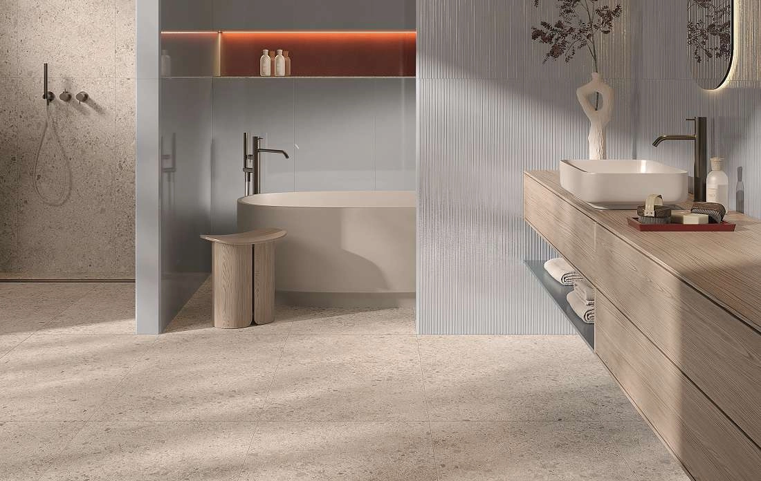 Керамогранит более устойчив к истиранию. Обычно, его используют для пола в общих зонах (прихожая, ванная, туалет, кухня) или общественных местах.
