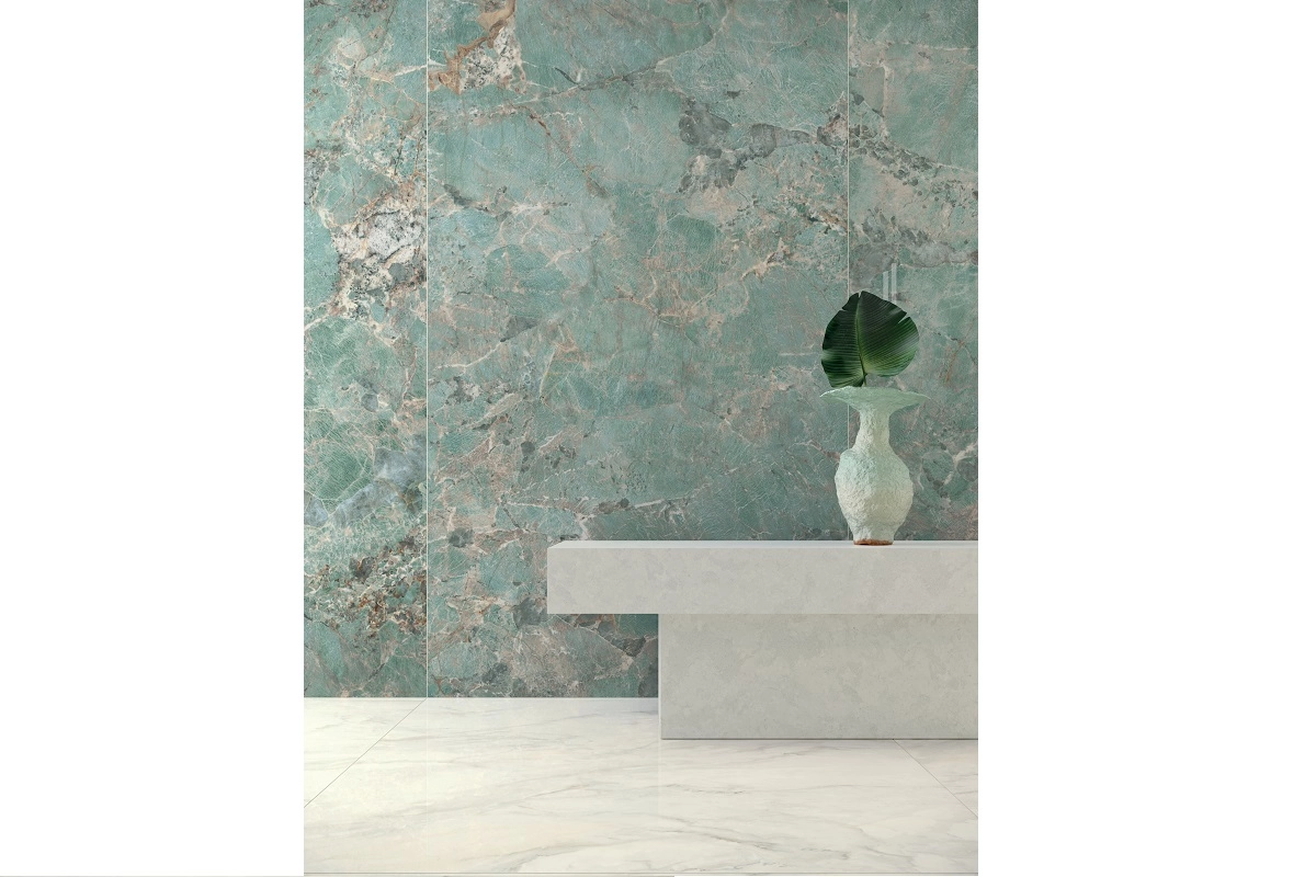 Цветовая гамма выдержана в натуральных оттенках – бежевом, белом, сером. Рисунок этих модулей сдержанный, спокойный. Нейтральные тона вы сможете разбавить плитками в нежных бирюзово-зеленых тонах. В этих вариантах узоры мраморных прожилок колоритные и выразительные.