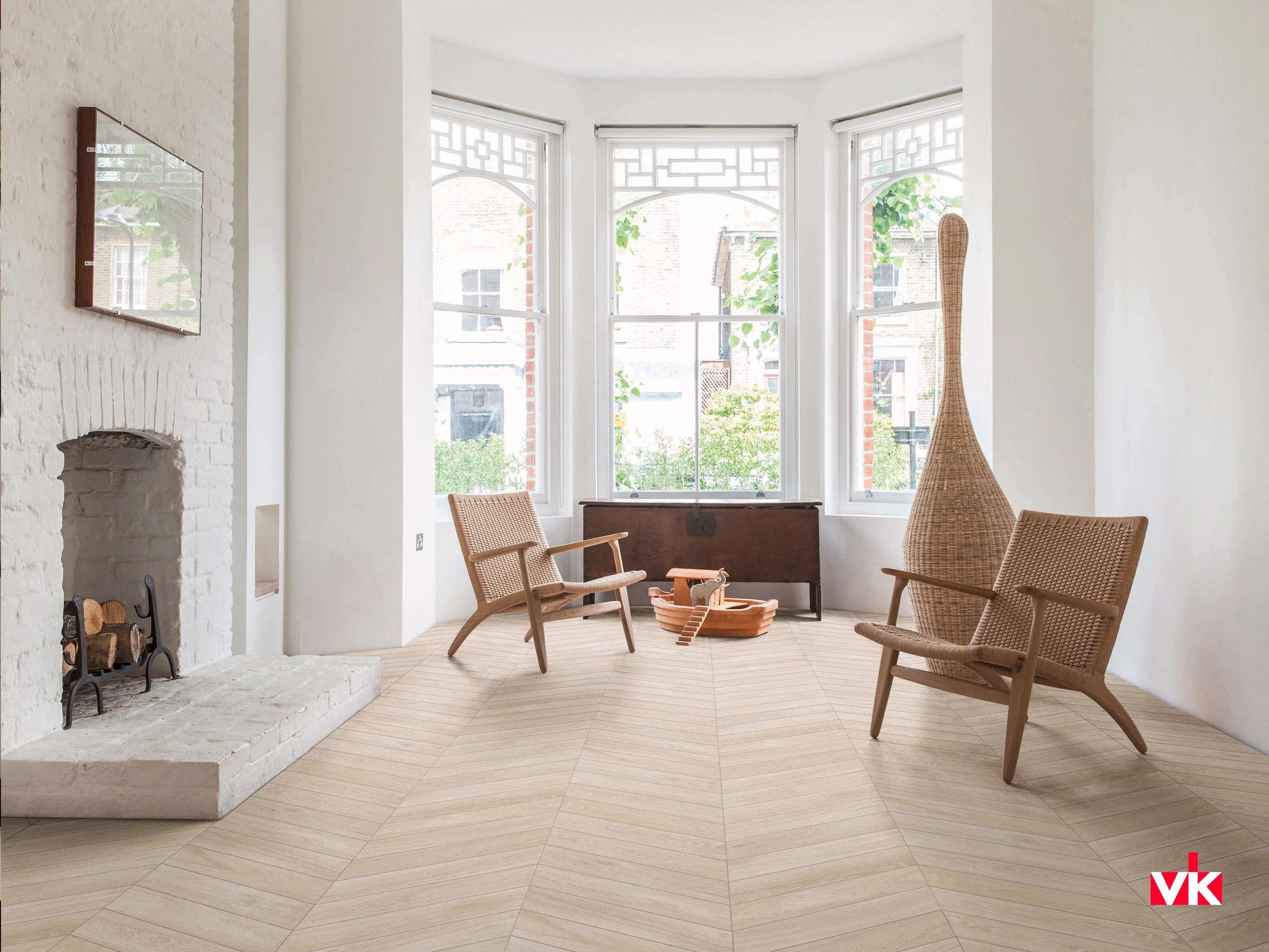 Керамогранит выпускается со скошенными краями размером 110х540 мм, что позволяет ее укладывать по схеме «елочка». Такая укладка подойдет как современному, так и классическому интерьеру помещений. Плитку можно укладывать в виде паркета или создавать различные графические орнаменты. Поверхность керамогранита матовая – это предотвращает случайное скольжение по ней. Коллекция хорошо подойдет для отделки полов в гостиной, прихожей, на кухне.