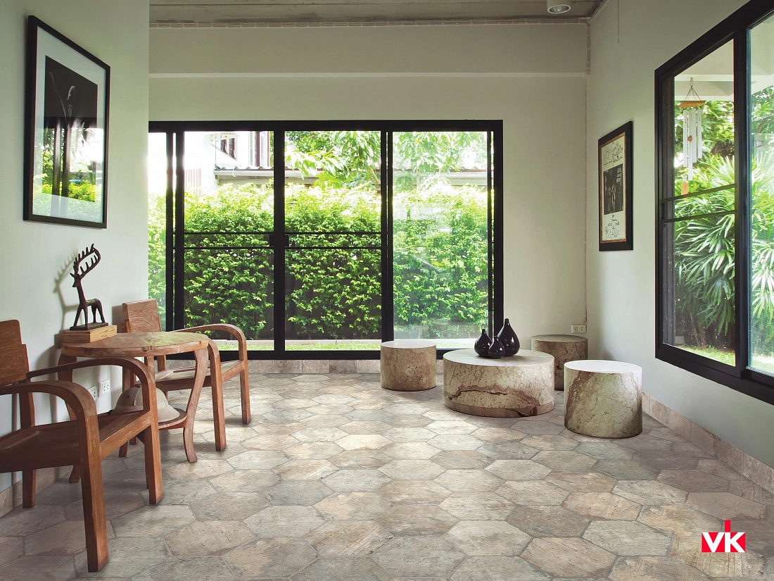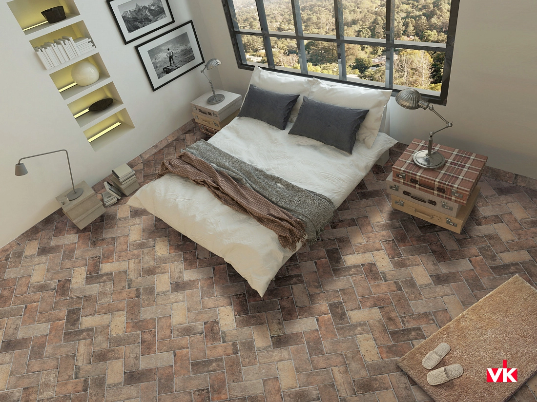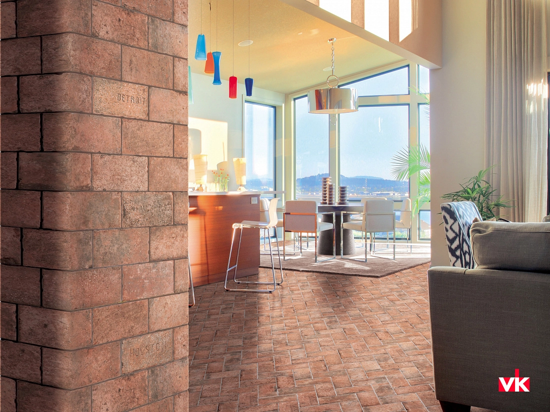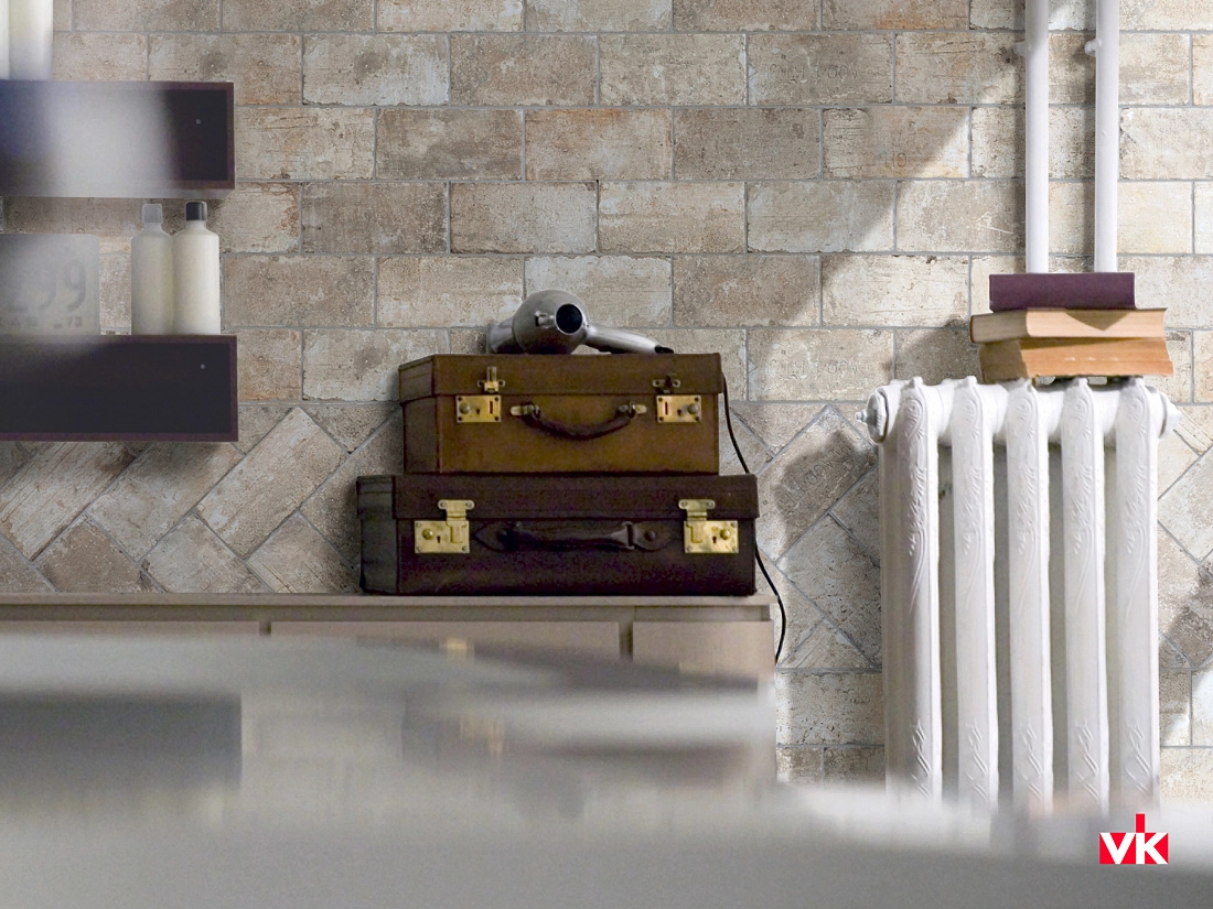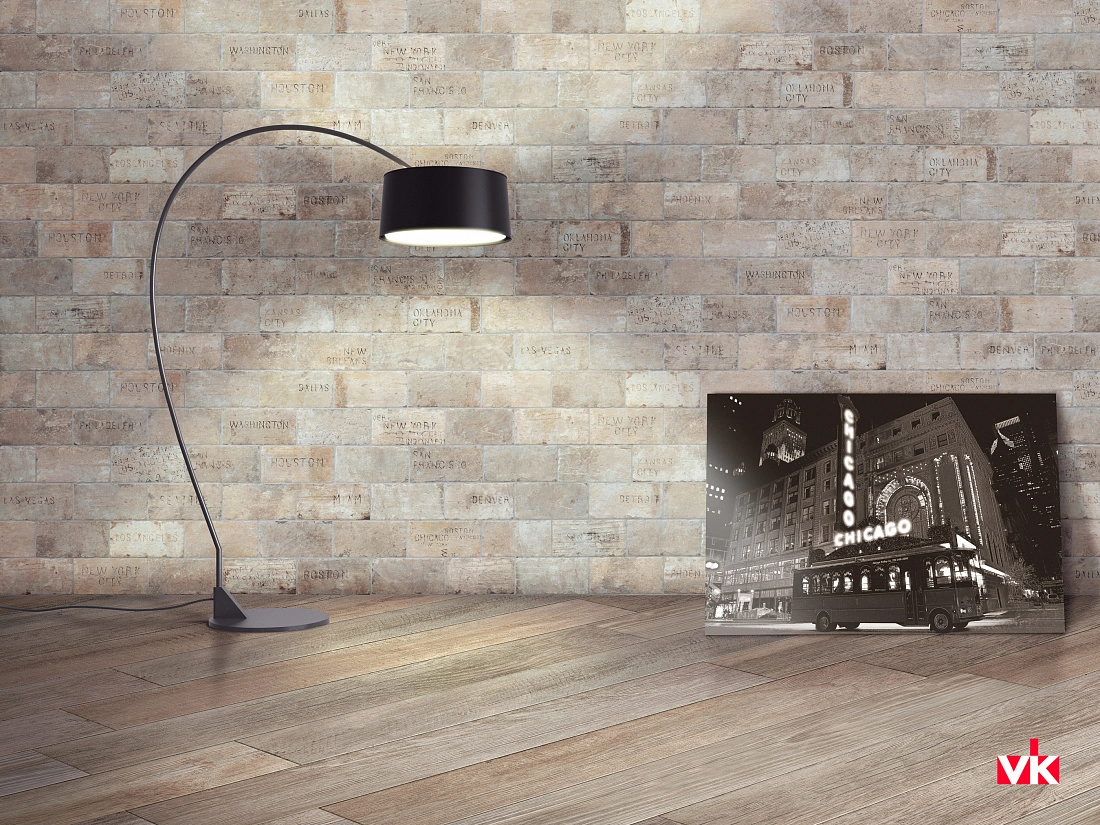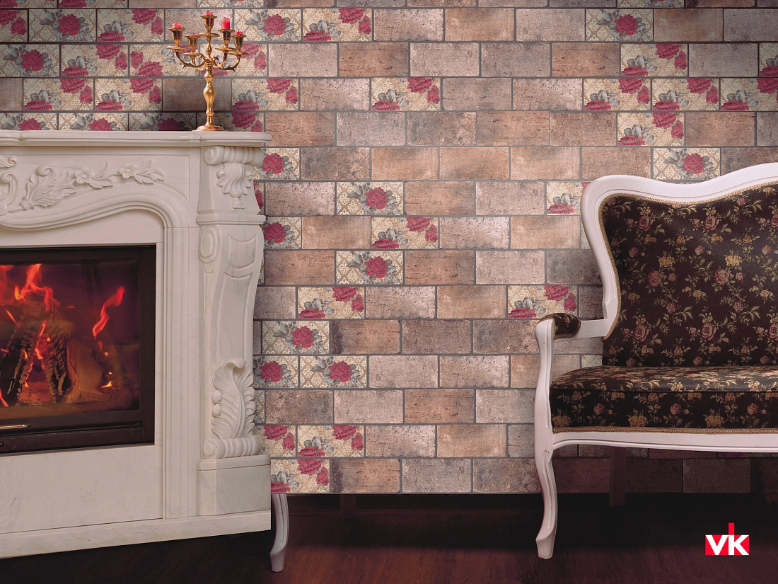 Плитка под кирпич 100х200 мм имеет матовую поверхность и предложена в широком диапазоне тонов – от светло- до темно коричневых. Кладку прямоугольными элементами можно разнообразить шестиугольниками-гексагонами из керамогранита 240х277 мм, которые выполнены в четырех цветах. В качестве элементов украшения используются прямоугольные винтажные элементы 100х400 мм. Они имеют вид кирпичной поверхности, на которой изображены красочные розы. Дополняют их 26 различных декоров City Mix и угловые L-образные элементы размером 135х100 мм.