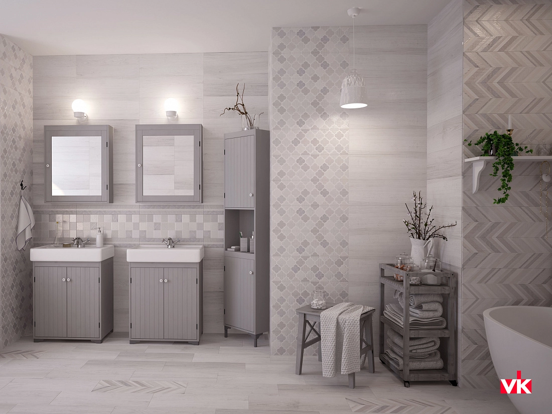 Коллекция Норданвинд не случайно вызывает в воображении картины зимнего пейзажа с искрящемся белым снегом и свежестью морозного дня. Норданвинд, в переводе со шведского, означает «Северный ветер». Коллекцию по достоинству оценят те, кому пришелся по вкусу современный и функциональный скандинавский стиль. Светло серебристый цвет керамической плитки зрительно расширяет пространство интерьера, наполняя его светом и воздухом. Текстура дерева добавляет нотку тепла в царство чистоты и прохлады. Декоративный орнамент в виде сложного узора арабского четырехлистника очаровывает игрой бликов на рельефной поверхности. Построенная на сочетаниях нюансов серого цвета, керамическая плитка Норданвинд сможет стать великолепным фоном для разнообразных мебельных композиций, выполненных в лучших традициях шведского дизайна. С помощью коллекции Норданвинд интерьер ванной комнаты наполнится бодрящим дыханием северного ветра.