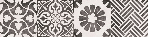 - декоров размером 300х600 мм – темные орнаменты на белом фоне плитки;