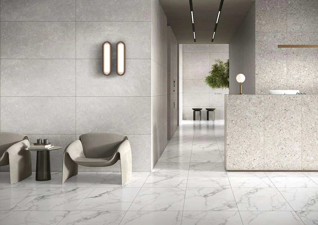 Керамогранит более устойчив к истиранию. Обычно, его используют для пола в общих зонах (прихожая, ванная, туалет, кухня) или общественных местах.