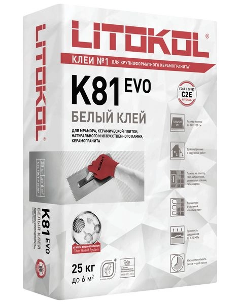 Высокоэластичная клеевая смесь LITOKOL LITOFLEX K81, белый, 25кг (СГ)