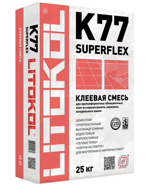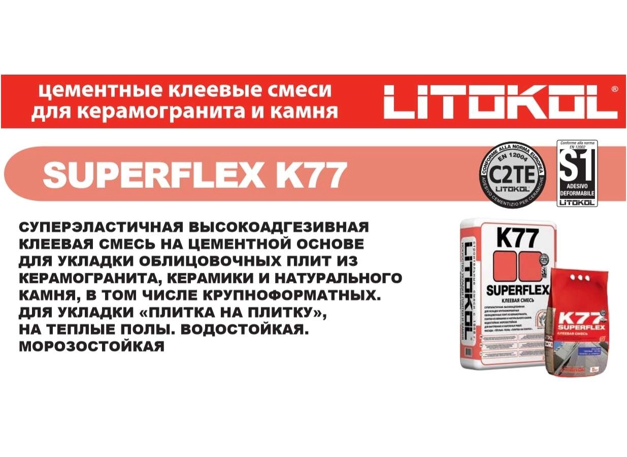 Суперэластичная клеевая смесь LITOKOL SUPERFLEX K77, серый, 25кг (СГ)