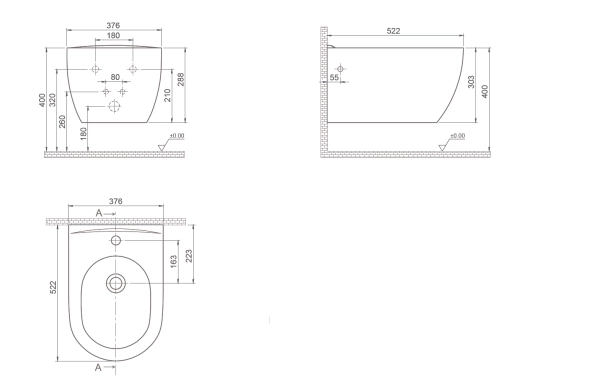 964-W Bianca подвесной биде, глянец белый