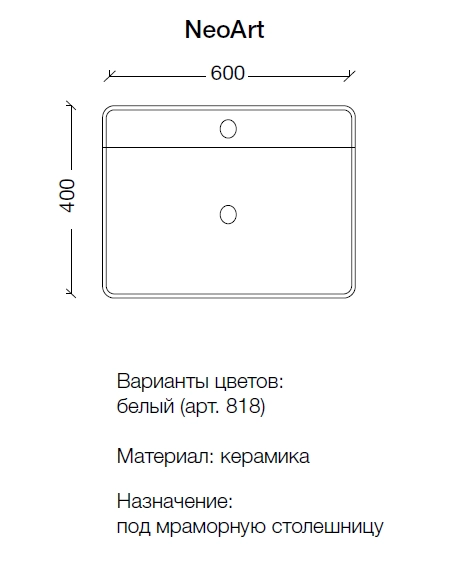 Неопределённо 818 Раковина Neoart керамика накладная, глянец 60*40