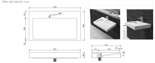 Неопределённо 859-080 Столешница моноблок FLAT 80см