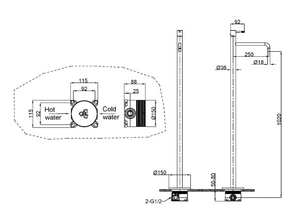 107-G Смеситель для умывальника напольный Uno Gold