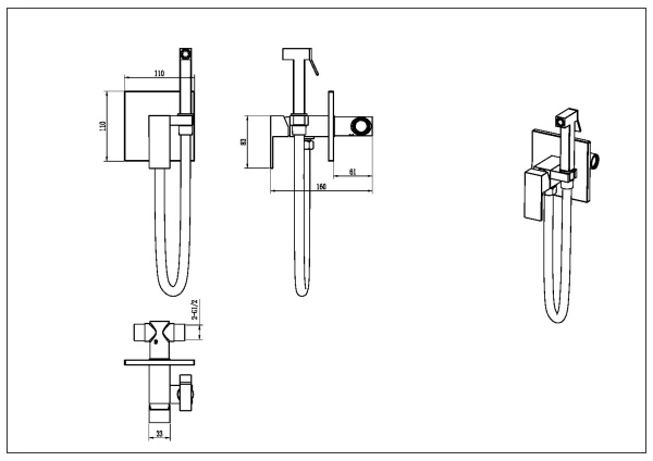 477-G Смеситель гигиенический Qubic Shine Gold