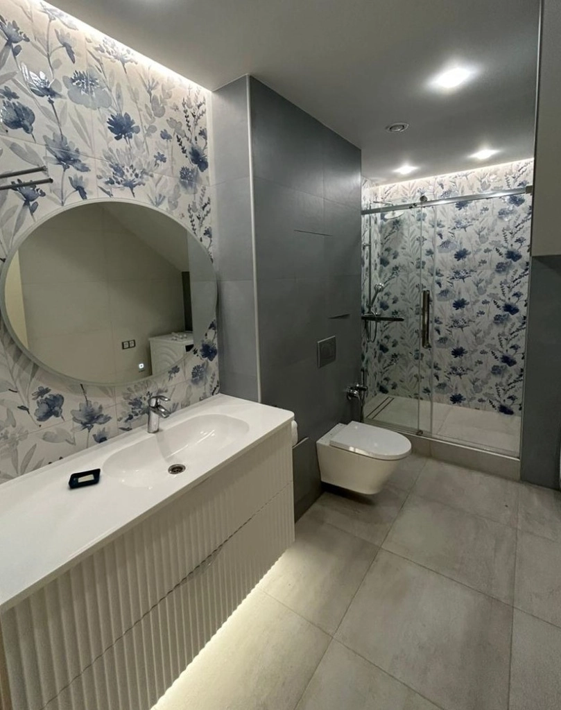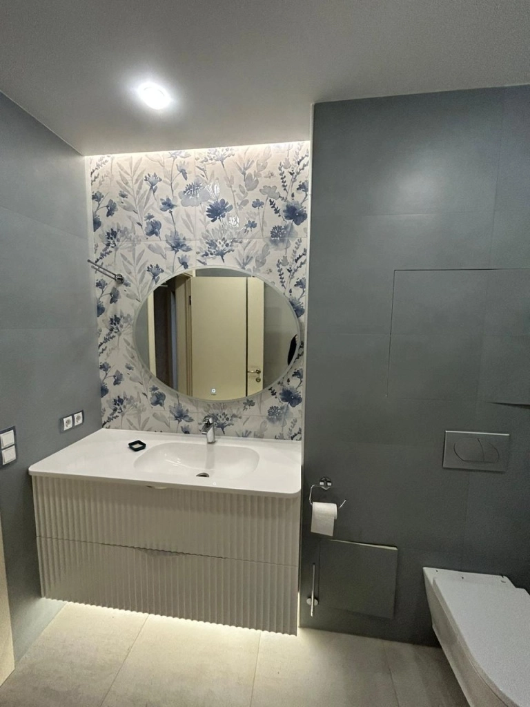Еще один проект ванной комнаты с коллекцией Milano Mood. Цветочный орнамент создаёт в интерьере комфорт и уют.