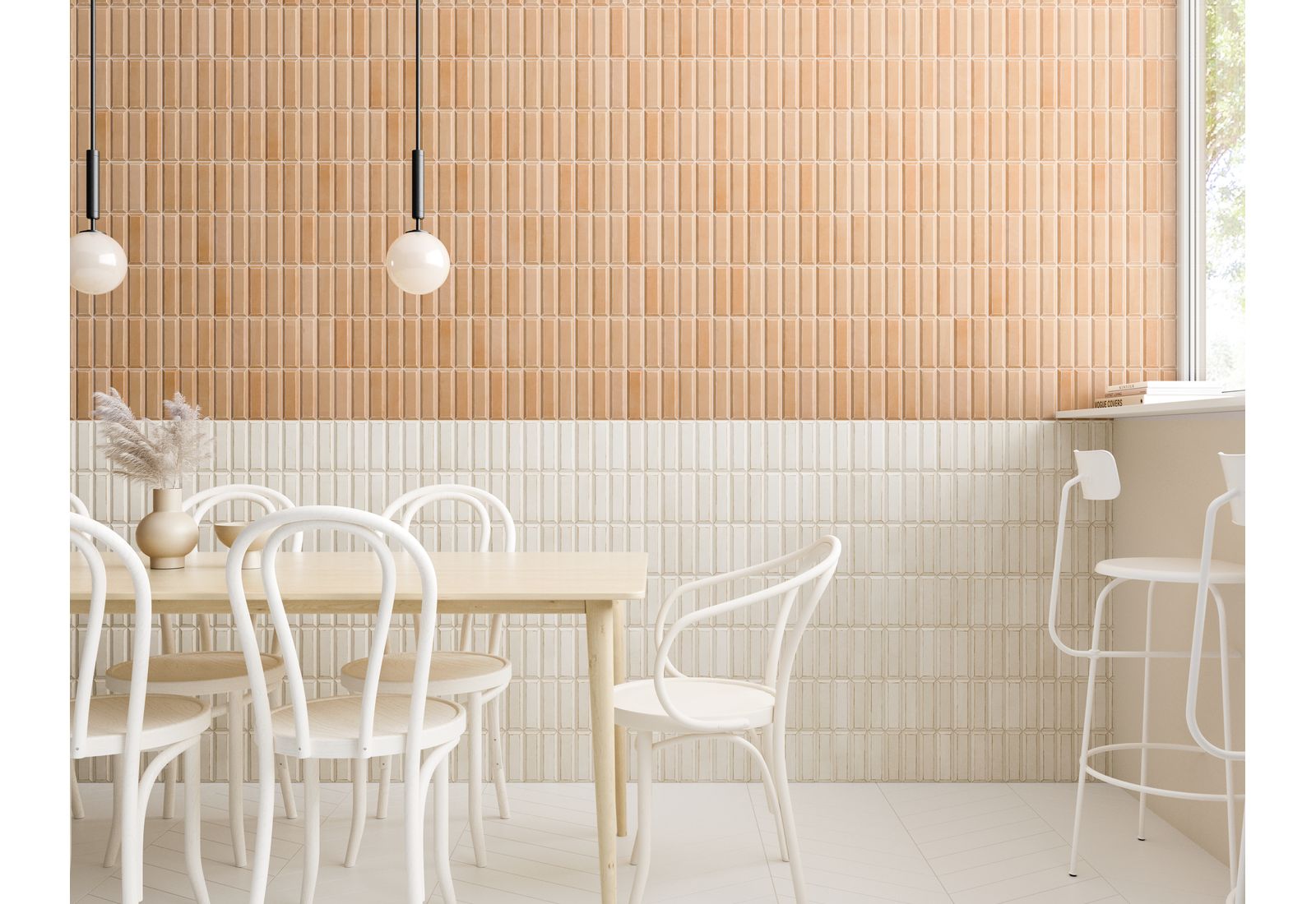 Плитка WOW Freehand имеет небольшой размер – 52х160 мм, поэтому ею удобно закладывать как небольшие по размеру поверхности, так и более крупные участки. Чаще при укладке используют небольшой шов, что позволяет получить красивую укладку при любой ориентации плитки.