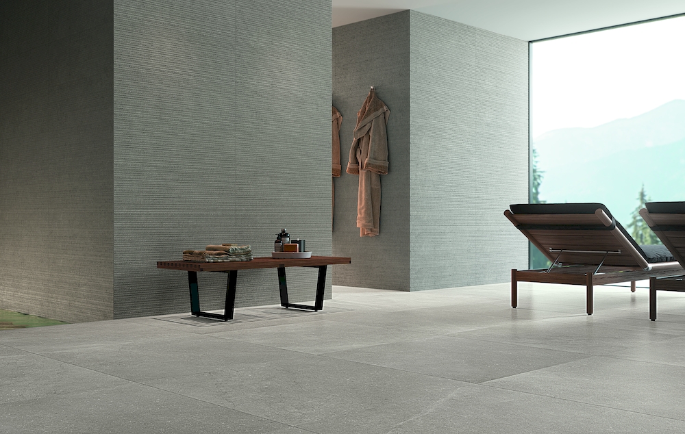 Базовая плитка керамики Fap Ceramiche предлагается в прямоугольном форм-факторе 305х915 мм, а декоры в квадратном 305х305 мм и в виде настенных фризов 15х915 мм. Ее поверхность матовая с имитацией песка, цемента и бетона. Окрашивается плитка в несколько цветов: