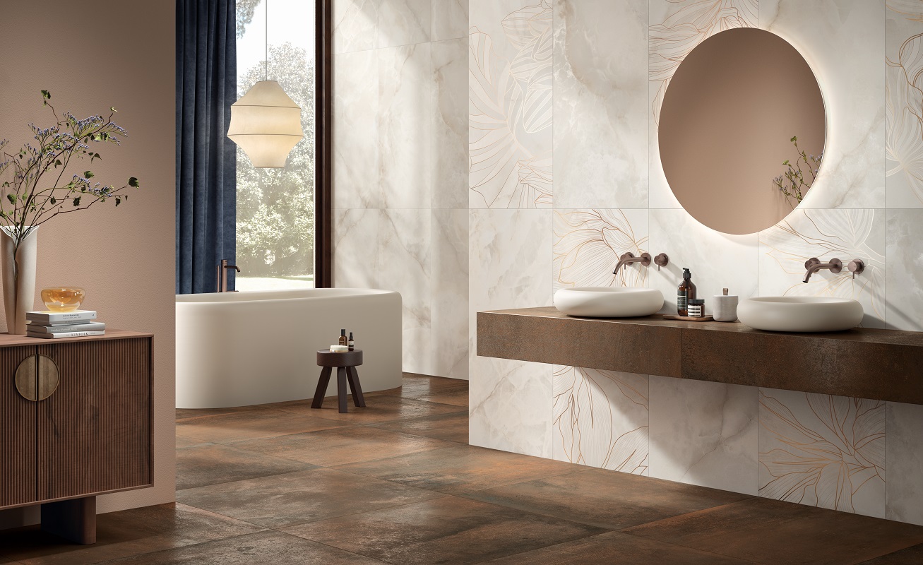 Керамогранит Lumiere от La Fenice (Италия) сочетает изысканный стиль и практичность. Коллекция включает плитку размером 600×1200 мм с лаппатированной поверхностью. Элементы имитируют текстуру мрамора, оникса, дополняя рисунки листьями и абстрактными узорами. Цветовая палитра включает нейтральные оттенки (бежевый, серый, белый) и контрастные комбинации, что позволяет использовать плитку для стилизации интерьеров в классическом, романтическом или современном стиле. Лаппатированная поверхность добавляет элегантный блеск, сохраняя естественный вид рисунков.