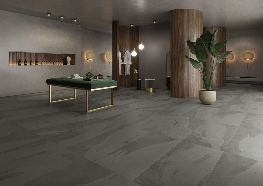 Модули выполнены в крупном формате 120х60 см. Такой размер позволит создать впечатление единой бесшовной поверхности.