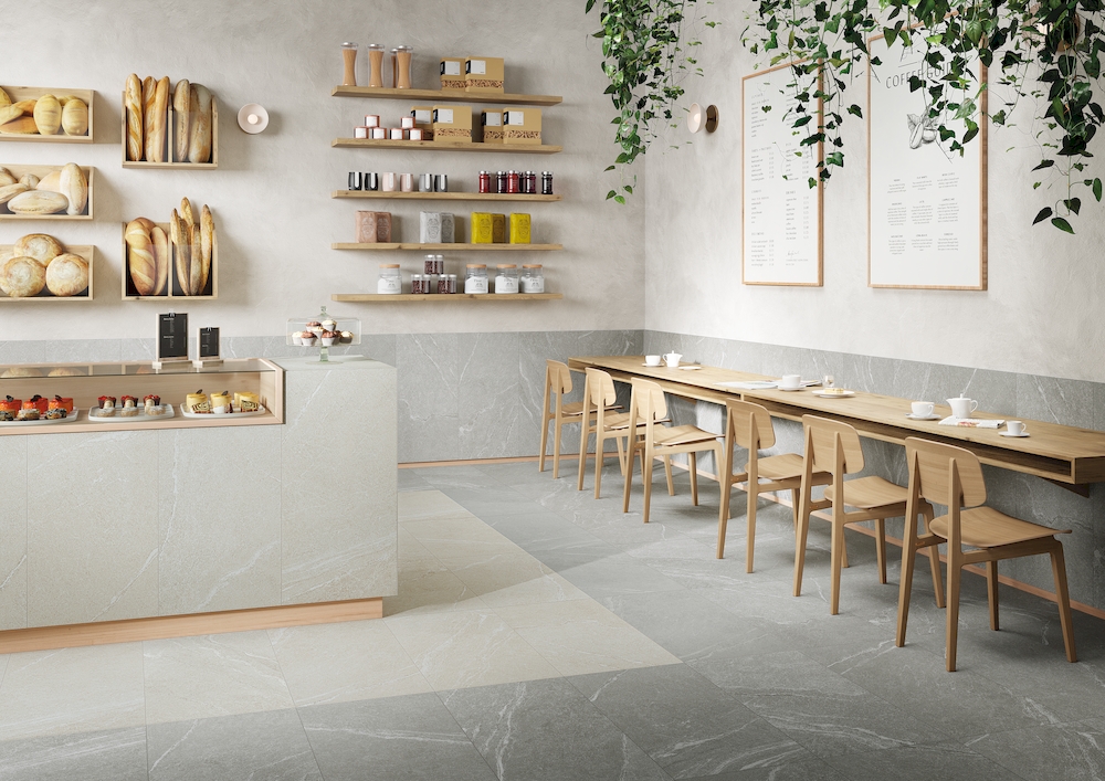 Керамогранит подходит для укладки в жилых и общественных помещениях с невысоким потоком посетителей – офисах, магазинах, кофейнях.