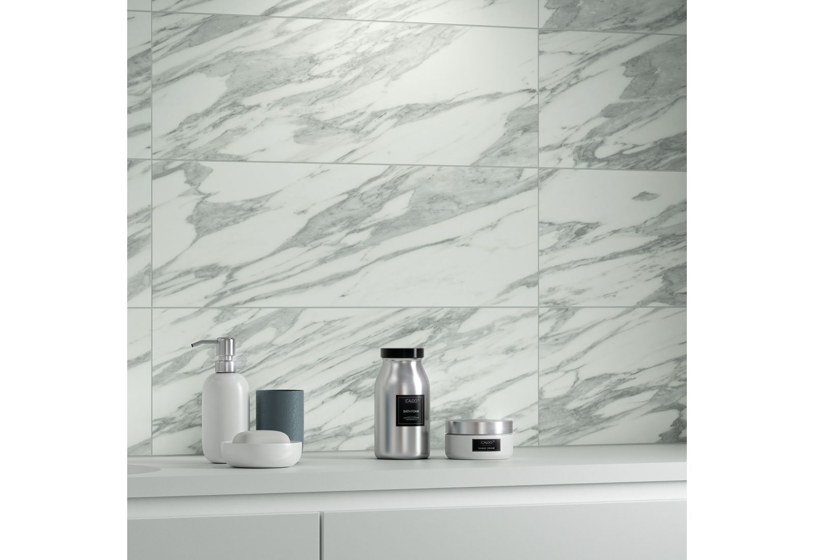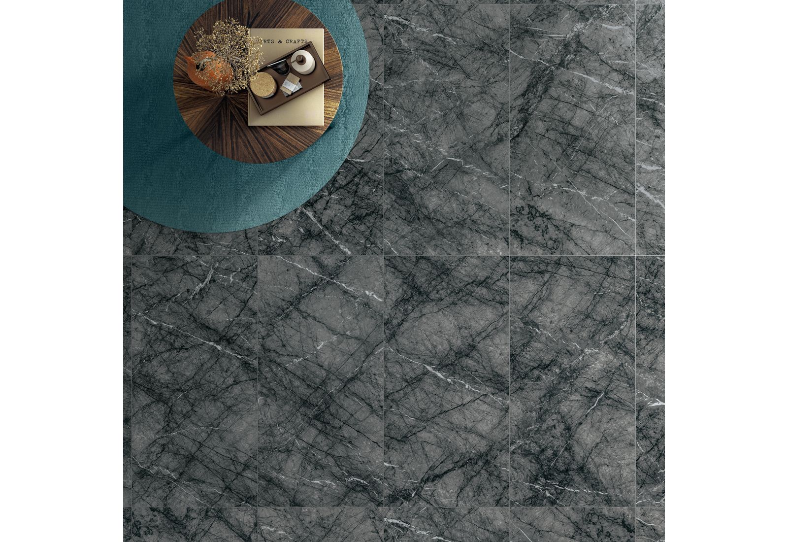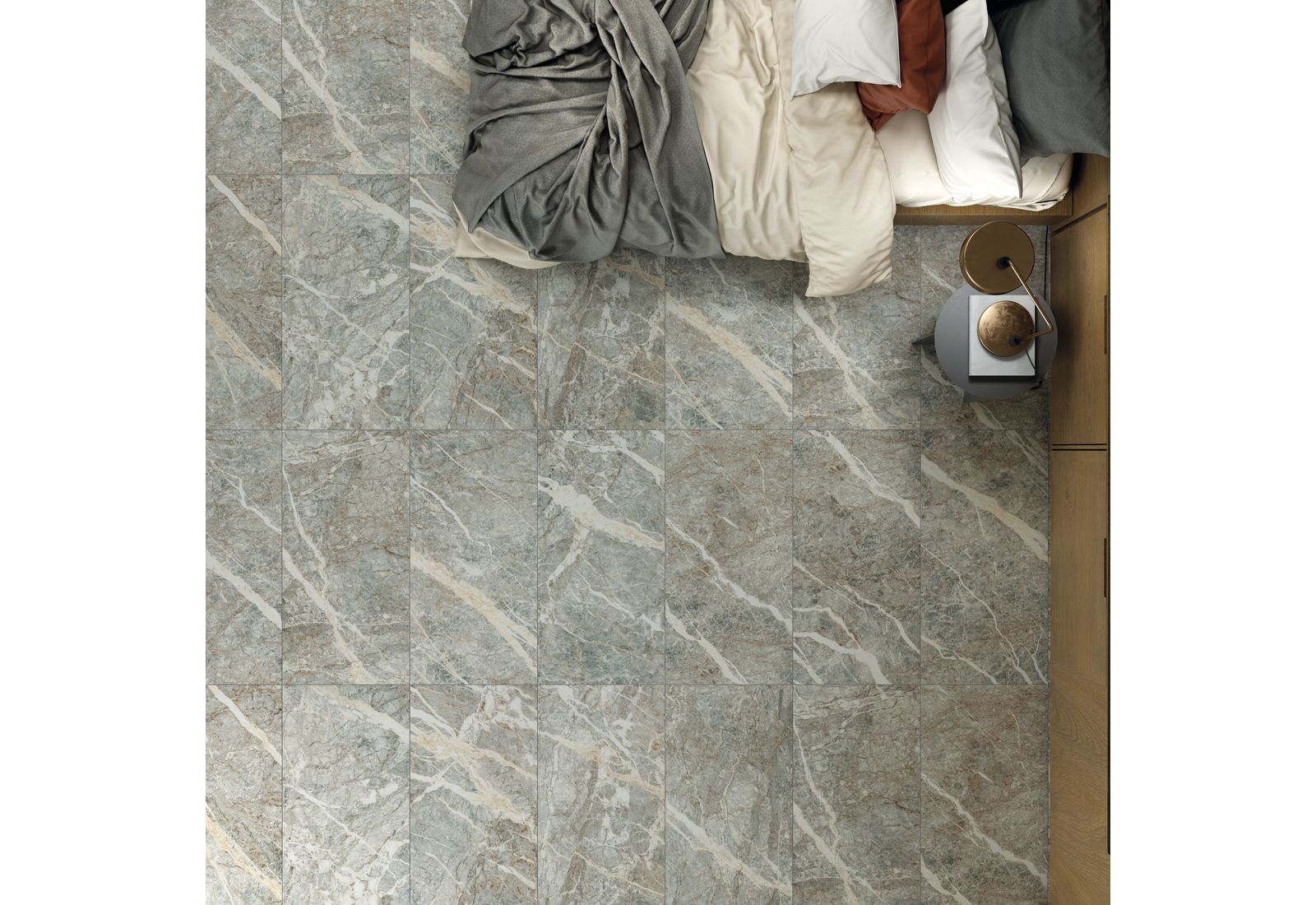 Поверхность плит матовая, она не скользит. Часто коллекцией оформляют ванные комнаты, санузлы, сауны, террасы и коридоры. Напольная плитка имеет ректифицированные края, поэтому, после укладки, она напоминает сплошной мраморный пласт. Разбавить мраморный узор можно декорами из мозаики, прямоугольных полос, монотонных элементов.