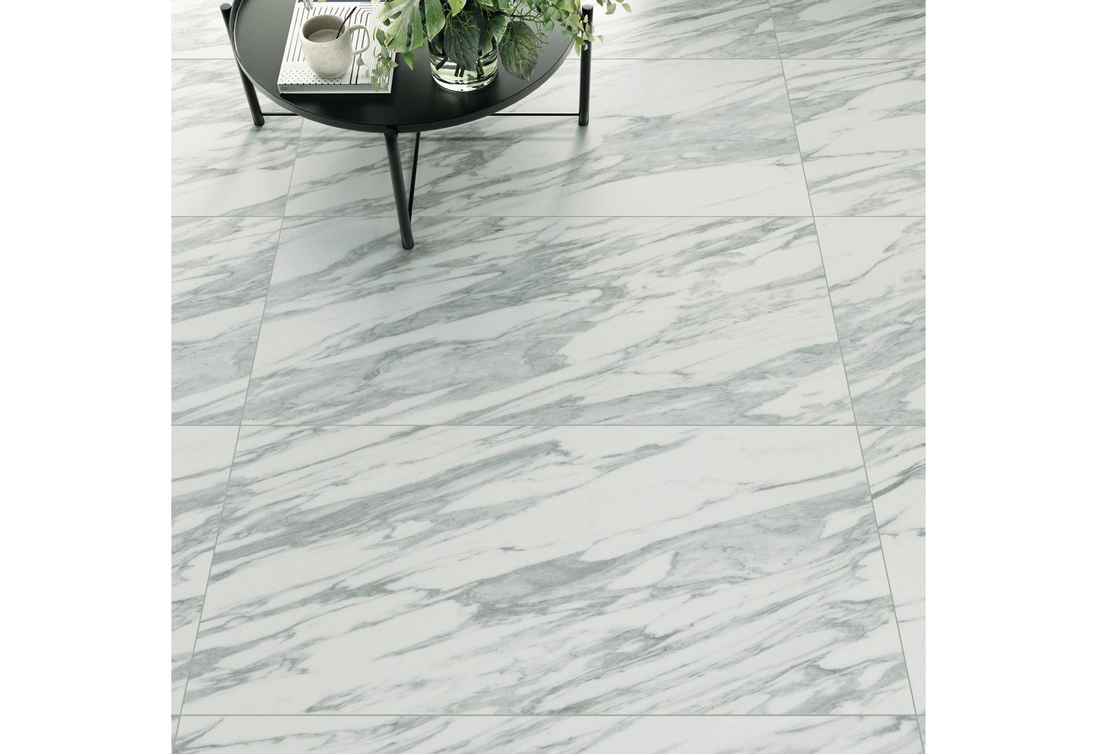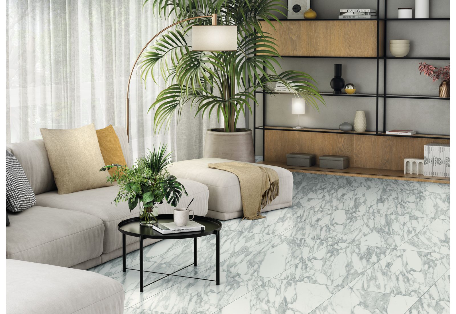 Coliseum Уффици – это российская коллекция керамогранита, имитирующего натуральный мрамор. Материал максимально точно передает всю фактуру натурального камня. Визуально сложно отличить, что на полу находится не плита, вырезанная с мрамора, а обычная керамогранитная плитка.