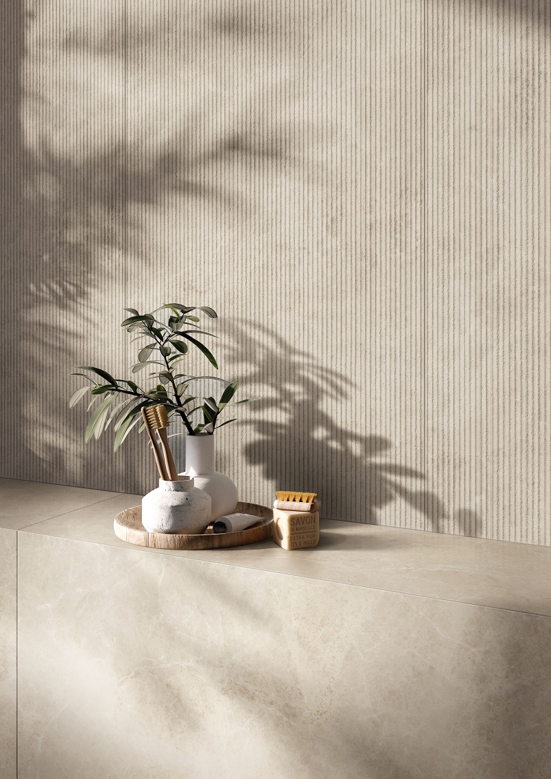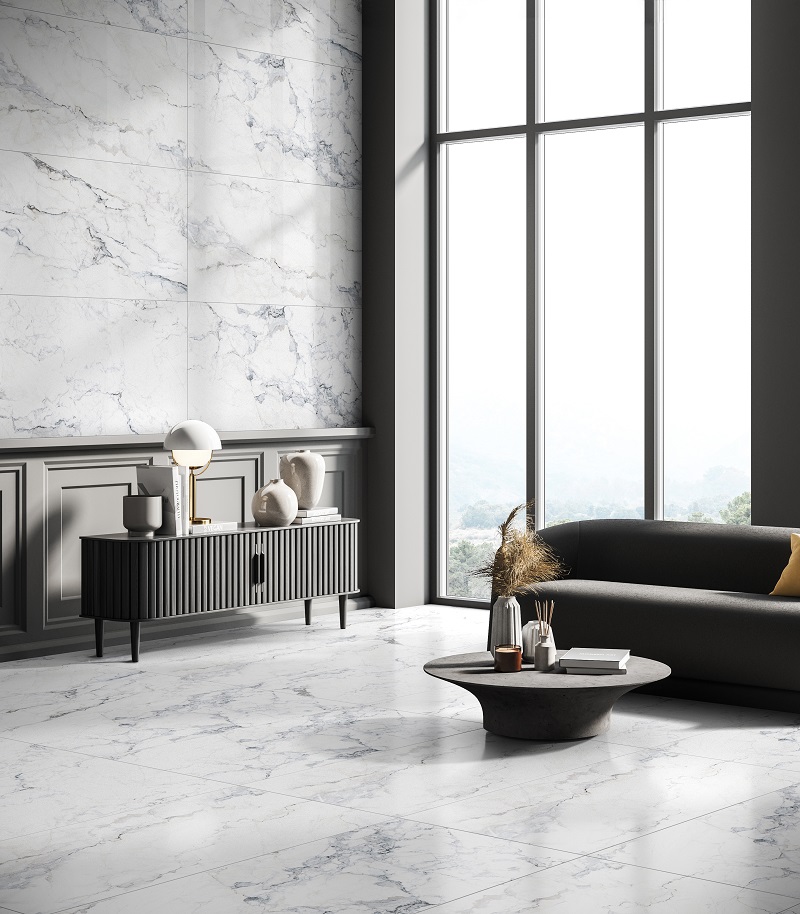 Керамогранит Marblesystem от Vitra (Россия) сочетает классический и современный стилистики. Элементы коллекции имитируют текстуру мрамора, оникса и природного камня, доступны в классических цветах: белый, чёрный, серый, бежевый, коричневый. Выпускается в формате 600×1200 мм с лаппатированной поверхностью, создающей мягкий блеск при освещении и усиливающей выразительность текстуры керамогранита Marblesystem Vitra.