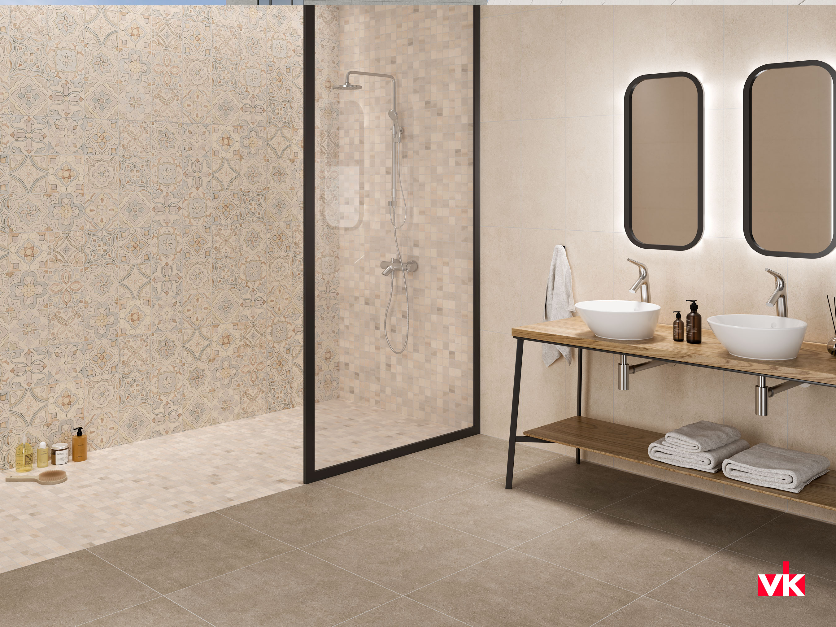 Выпускается керамическая плитка Vitra Newcon в прямоугольном (300х600 мм, 600х1200 мм) и квадратном форм-факторах (600х600 мм). Vitra имеет ректифицированные края, что позволяет применять технологию бесшовной укладки. Такая отделка кромки вместе с большим размером плит позволит создавать иллюзию почти непрерывной плоскости из керамики. Благодаря этому, визуально будет казаться, что помещение более просторное.