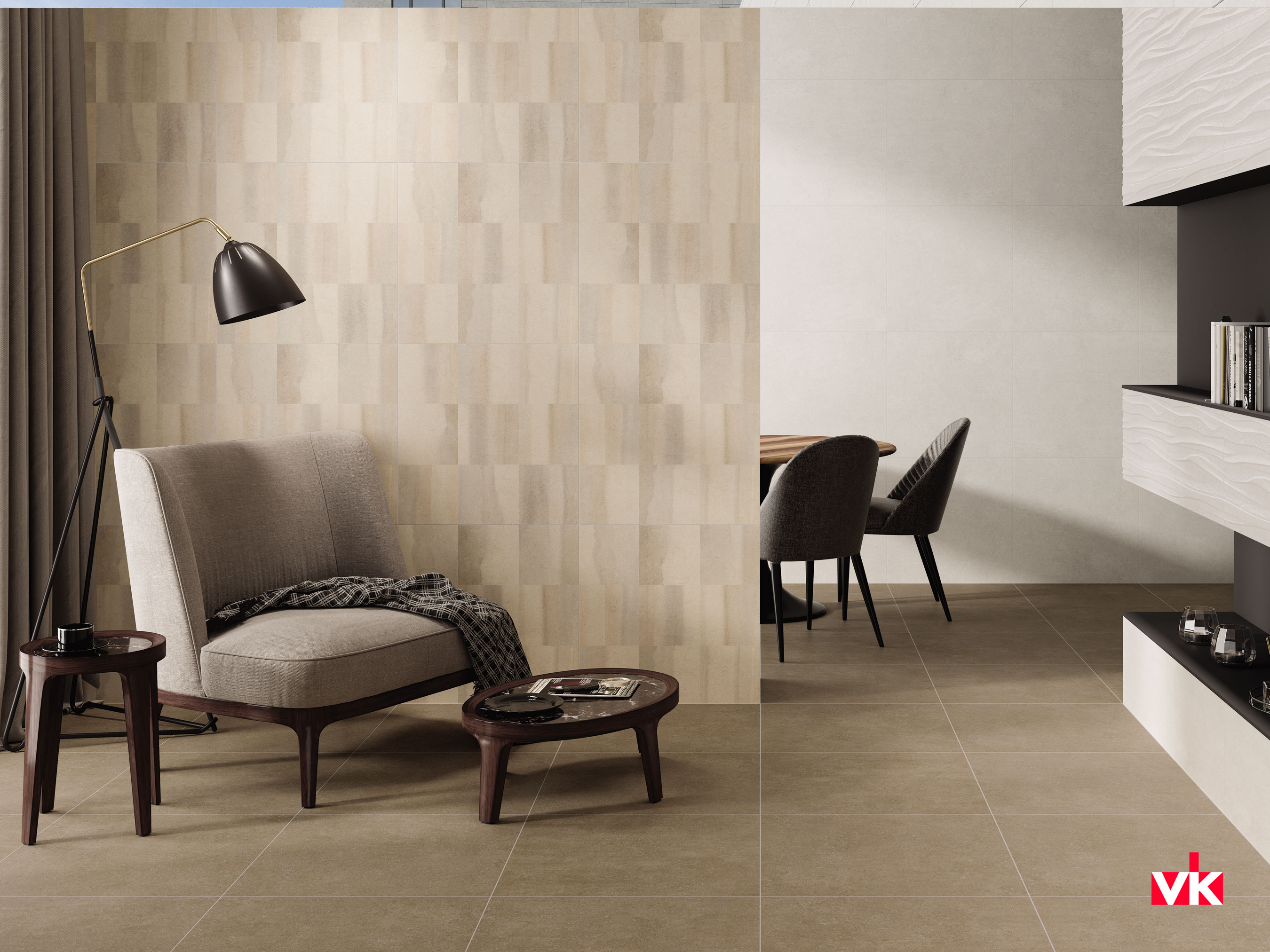 Базовыми цветами Vitra Newcon являются серый, коричневый, кремовый, белый. Оттенки подобраны так, что за покрытием очень легко ухаживать. На ней не будут видны разводы после влажной уборки, даже если они есть. Кроме этого, эти цвета создают уют в доме. Несмотря на то, что плитка из керамогранита, у нее нет эффекта «холодного дыхания». Наоборот, она приятна при тактильном контакте, а своим видом создает впечатление, что от поверхности идет теплая энергия.